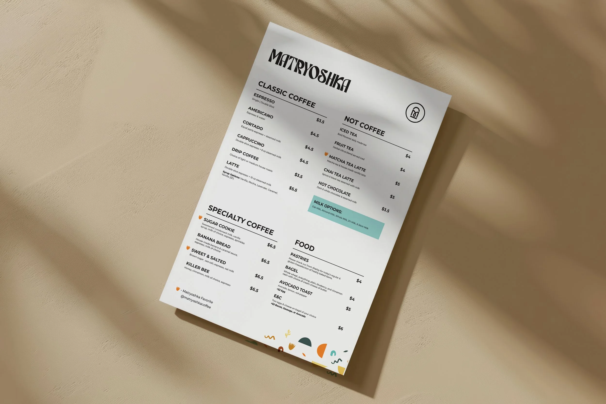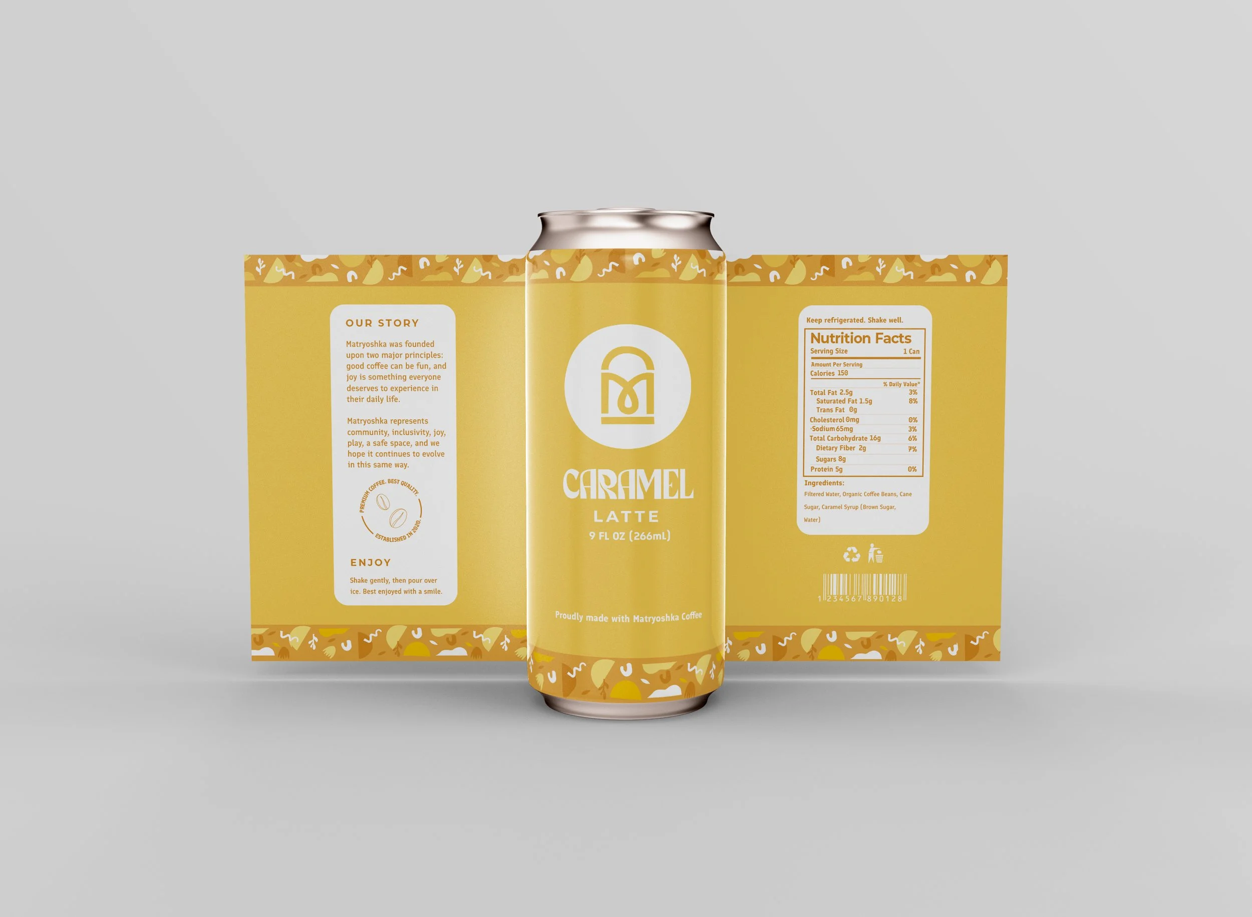 Matryoshka is a packaging concept for a Nashville coffee shop, designed to bring the brand’s bold, energetic atmosphere into to-go coffee cans and coffee bean packaging. The result is a visual system that captures the spirit of the café while extending its presence beyond the physical space.